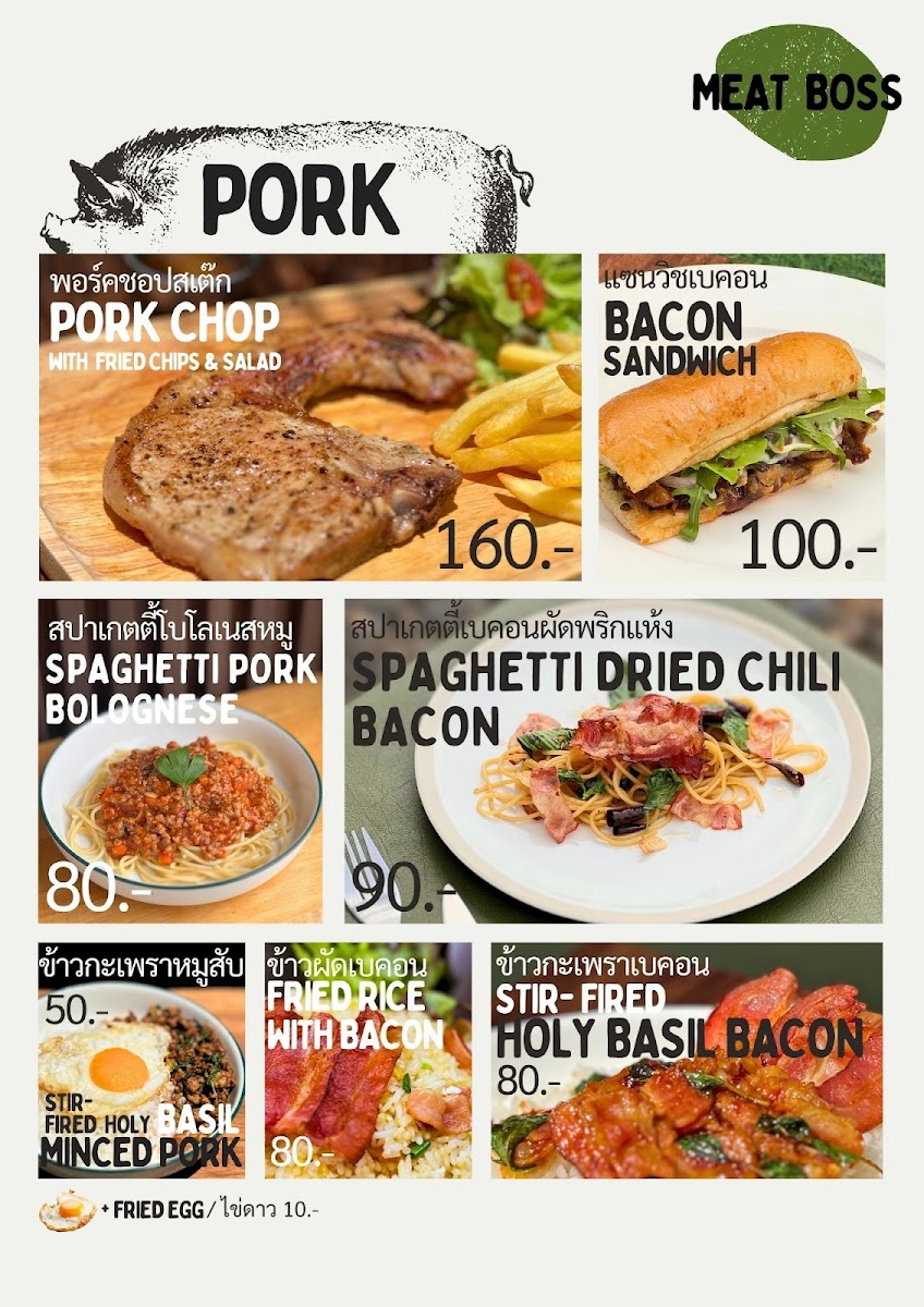Beyond steaks, the restaurant offers flavorful specialties like the spicy beef spaghetti ("ขี้เมาเนื้อ") that balances bold, intense seasoning with authentic Thai flair. Customers appreciate the meticulous care in preparation, as the dishes often reflect slow, thoughtful cooking by a dedicated chef. The warm, laid-back atmosphere and attentive service add to the overall experience, making MEAT BOSS a must-visit for steak enthusiasts and anyone craving satisfying, well-crafted meals.