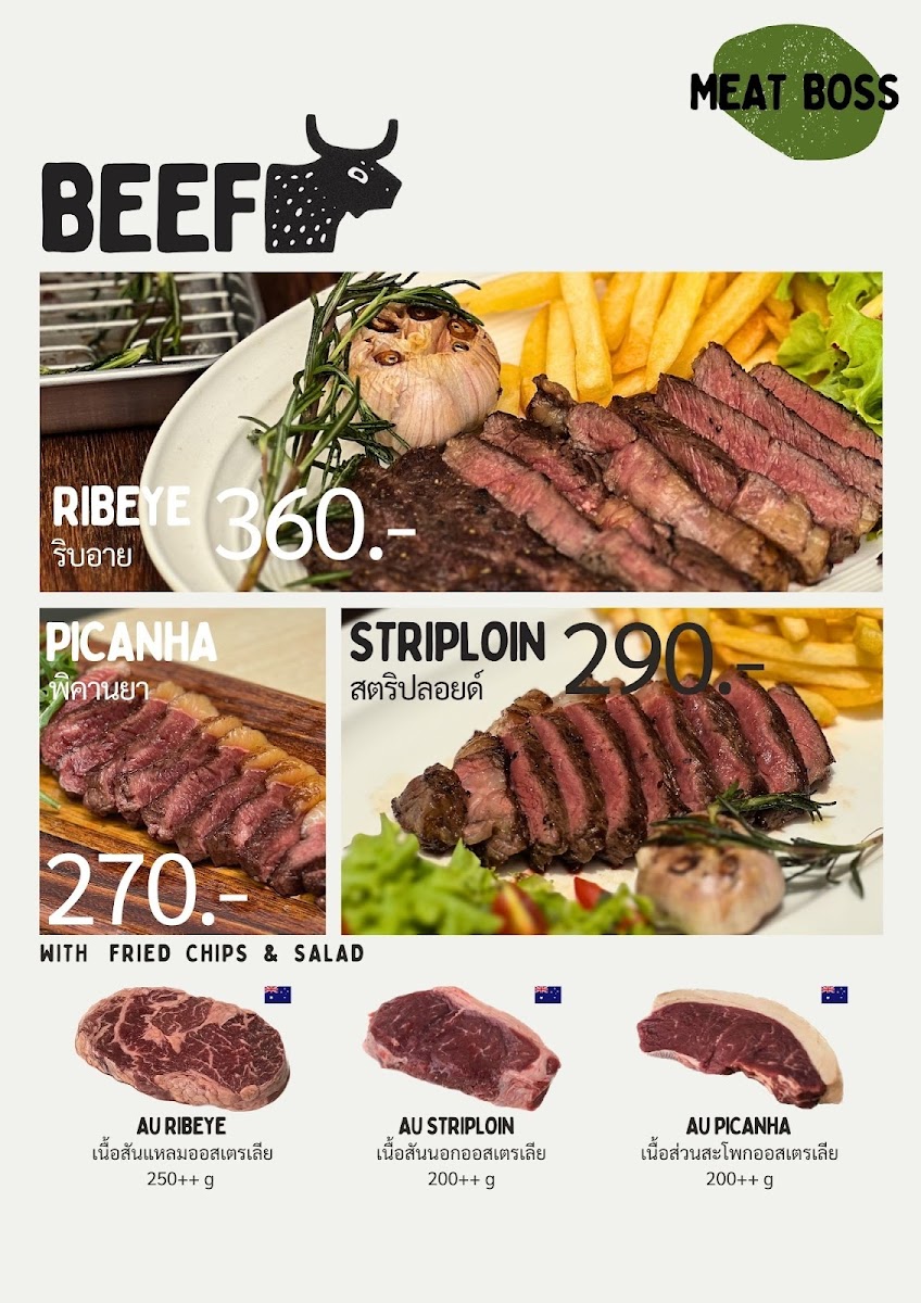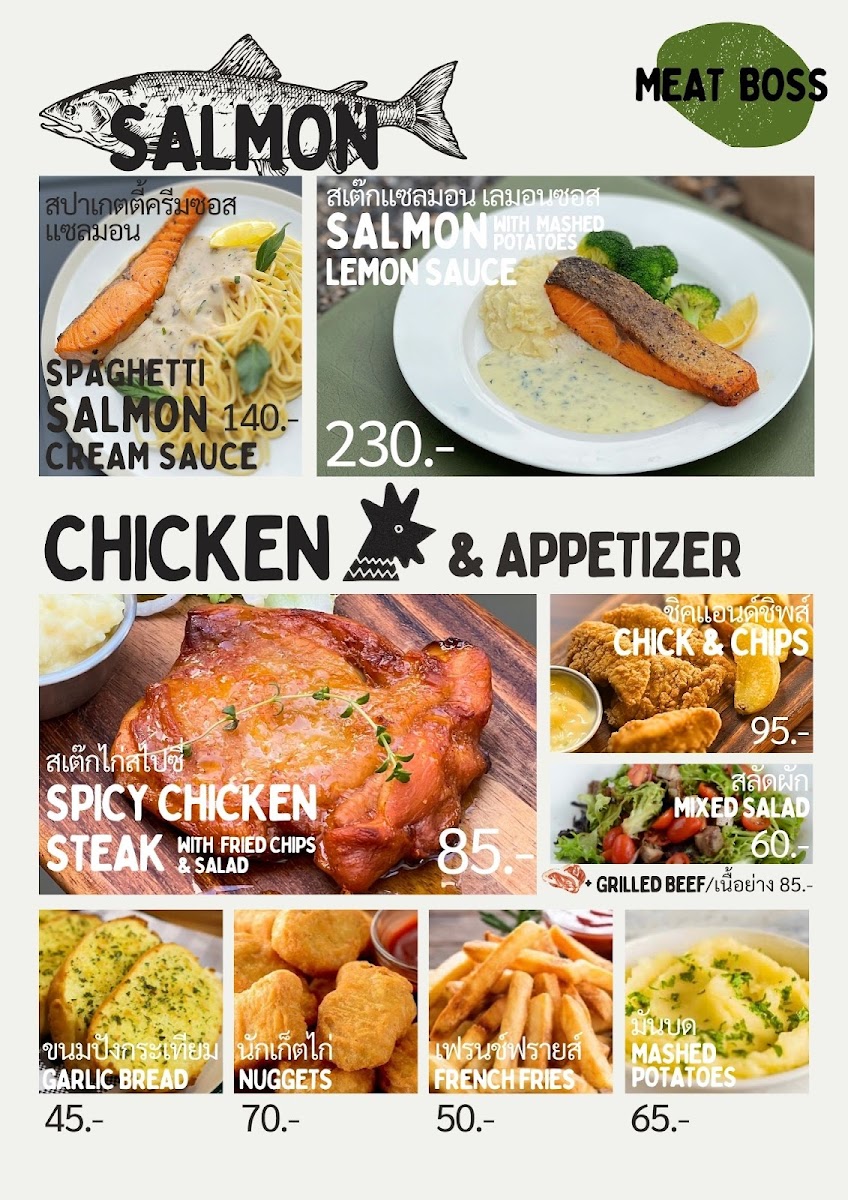 MEAT BOSS Steak & Grill (มีทบอสสเต๊ก) is a cozy steakhouse gem located in Pathum Thani, offering a delightful menu that caters to meat lovers and casual diners alike. The highlight here is the expertly cooked steaks, praised for their tenderness and rich flavors, all served at very reasonable prices. Alongside juicy pork chops and well-seasoned chicken steaks, the menu features comforting sides like creamy mashed potatoes and crispy fries that perfectly complement the main dishes.
